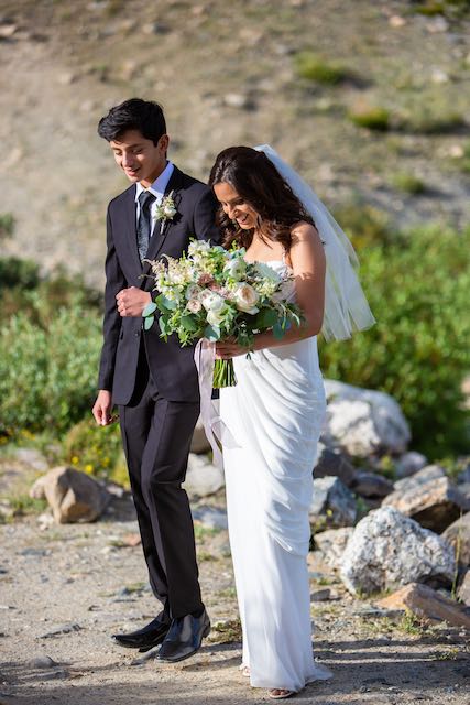 Wedding details: Julia and Ernesto's intimate elopement was held in a beautiful mountain range near Breckenridge, Colorado. The couple opted out of a big wedding in Texas for a small, but significant elopement here in Colorado. They had their son as the only guest and Best Man. There were tears of joy shared between this sweet family and a quietness surrounded us in the great, wide, wilderness. Along a stunning mountain backdrop, we added on the cake cutting and toast right along the serene lakeshores. You can't beat having all of this in the mountains - it was simply, exquisite!