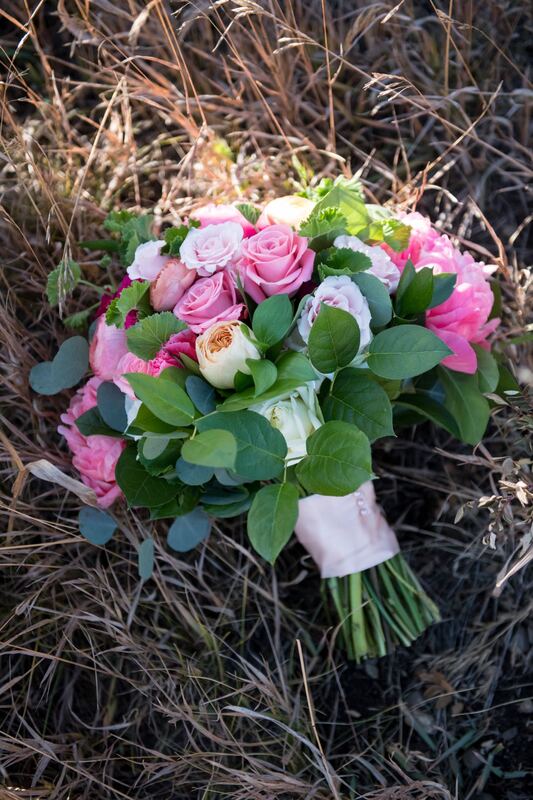 Wedding details: The couple's details were a reflection of their cheerful personalities - they incorporated coral, pink, white and green in their floral selection. They decided to add-on a floral comb, that accented Annas wedding day hair perfectly, 2 centerpieces, 5 wrist corsages and 5 mens corsages. Along with their beautiful floral add ons, Anna and Bradley chose to also add wooden benches to their ceremony. After their private ceremony in the mountains, the guests transported to a local restaurant in Breckenridge for a celebration dinner, who is well-known for its beautiful views, floral decor and premier menu.